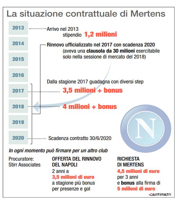 La situazione contrattuale di Mertens nella grafica de “Il Mattino”