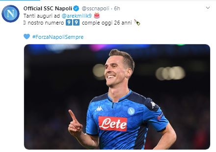 Anche il Calcio Napoli festeggia il polacco
