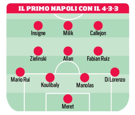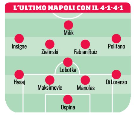 Il cambio di gioco imposto al Napoli da Gattuso ha avuto bisogno di tempo: una linea di centrocampo modificata dopo gli arrivi dei rinforzi di mercato: Lobotka, Demme e Politano. Insigne è stato arretrato per partire faccia alla porta e sostenere la punta centrale rimasta unico punto di riferimento.