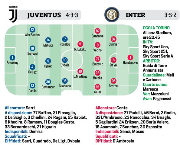 Finalmente si gioca, Juve/Inter è il momento della verità. Così le due formazioni in campo secondo Il CdS