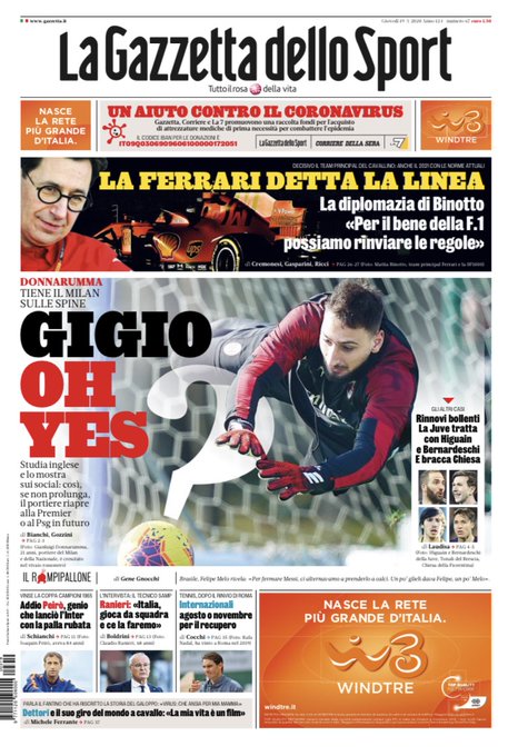 NewsCalcioIn Evidenza Rassegna stampa del 19 marzo. Le prime pagine sportive nazionali By Giuseppe Sacco il Mar 19, 2020 - 07:45:00 0 Condividi Dall’odierna rassegna stampa ecco in primo piano Factory della Comunicazione CalcioNapoliRassegnaStampa 0 Condividi FacebookTwitterGoogle+ReddItWhatsAppPinterestE-mail