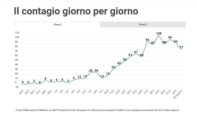 Coronavirus a Napoli, l’epidemia rallenta. Contagiato un segretario del Cardinale Sepe. I dati nel grafico