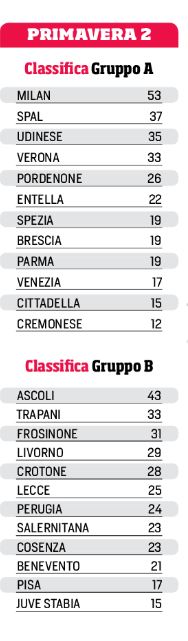 Nel campionato Primavera 1 mancano dieci giornate di campionato, ma alcune squadre hanno gare da recuperare. Il regolamento prevede che le prime sei della classifica disputino i play off per lo scudetto (con le prime due già qualificate per le semifinali). Tre retrocessioni: le ultime due più la perdente dello spareggio tra 13ª e 14ª. In Primavera 2 mancano tre giornate: già promosso il Milan, all’Ascoli mancano tre punti.