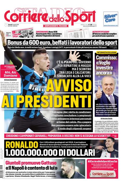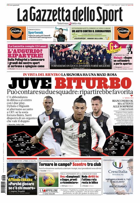 CalcioNewsRassegna Stampa Rassegna stampa del 3 aprile. Prime pagine sportive nazionali By Giuseppe Sacco il Apr 3, 2020 - 08:00:11 0 Condividi Dall’odierna rassegna stampa sportiva ecco in primo piano Factory della Comunicazione CalcioNapoliPagineprime 0 Condividi FacebookTwitterGoogle+ReddItWhatsAppPinterestE-mail