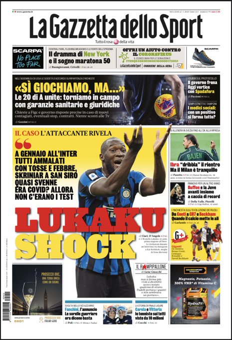 NewsCalcioIn Evidenza Rassegna stampa del 22 aprile. Prime pagine sportive nazionali By Giuseppe Sacco il Apr 22, 2020 - 07:40:58 0 Condividi In primo piano dai principali quotidiani sportivi nazionali Factory della Comunicazione CalcioNapoliPagineprime 0 Condividi FacebookTwitterGoogle+ReddItWhatsAppPinterestE-mail