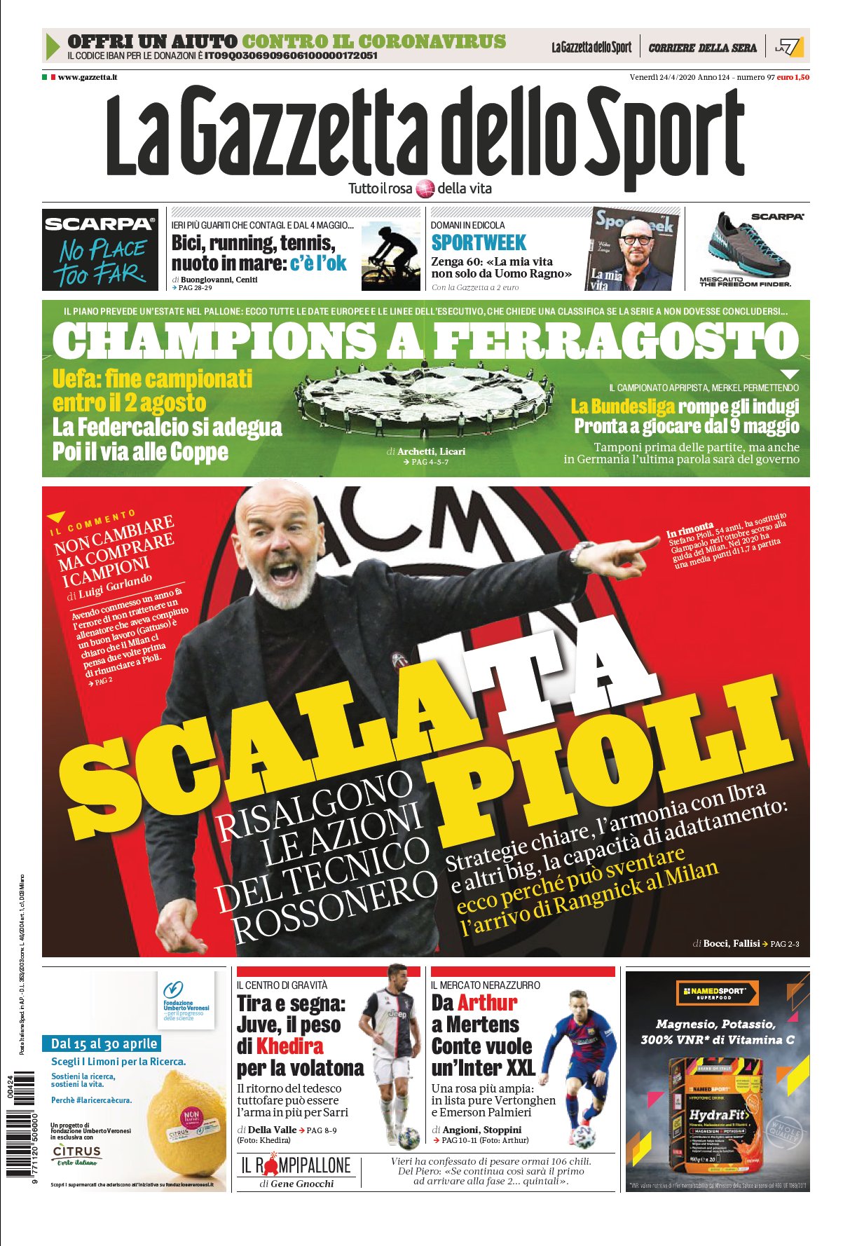 NewsCalcioIn Evidenza Rassegna stampa del 24 aprile. Prime pagine sportive nazionali By Giuseppe Sacco il Apr 24, 2020 - 07:15:42 0 Condividi Dai principali quotidiani sportivi nazionali ecco in primo piano Factory della Comunicazione <napoliCalcioRassegnaStampa 0 Condividi FacebookTwitterGoogle+ReddItWhatsAppPinterestE-mail