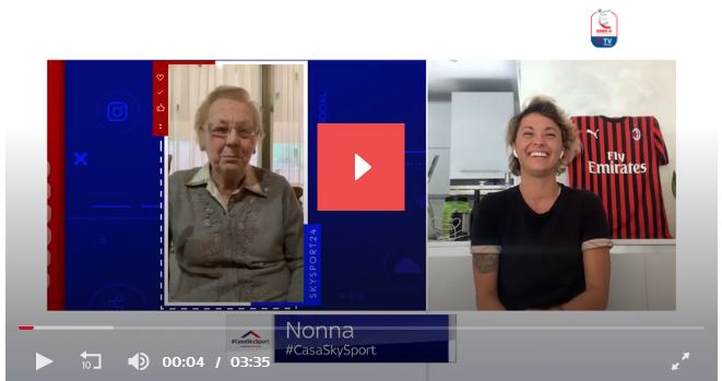 E poi arriva il messaggio che non ti aspetti. E’ quello di nonna Valeria, che Valentina non abbraccia da diversi mesi. “Nonna mi racconta che parla con la gigantografia della mia figurina… la tiene sul divano. E le fa compagnia. Mi manca molto, così come mi manca mio nonno– spiega commossa la calciatrice- era il mio supporter numero uno, mi manca quando torno a casa la domenica, mi mancano le sue prediche e il fatto che non mi abbia potuto vedere con la maglia del Milan. Ora che non c’è più provo a ricordarlo dedicandogli ogni mio gol”.