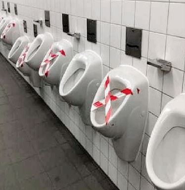 Allora in Germania, tra le misure per mettere in regola gli stadi, è stato predisposto il distanziamento anche in bagno.