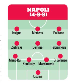 Il Napoli continua la preparazione in vista della sfida di sabato contro l’Inter per il return-match di Coppa Italia. All’andata decise la splendida rete a giro di Fabian Ruiz che andò a finire sotto l’incrocio dei pali. Il tecnico degli azzurri Gennaro Gattuso potrà contare su quasi tutta la rosa ad eccezione di Manolas, ancora problemi al ginocchio, ma sta recuperando dalla botta subita. Per il resto un paio di dubbi con Ospina in vantaggio su Meret in porta, per l’esterno di difesa a sinistra Mario Rui rispetto a Ghoulam. A centrocampo tutto confermato con Zielinski e Fabian Ruiz sugli esterni e Demme al centro. In avanti il vero ballottaggio della gara con l’ex di turno Politano in leggero vantaggio su Callejon, per il resto Mertens e Insigne a completare il reparto offensivo.