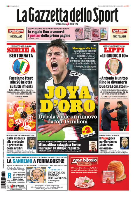 NewsCalcioIn Evidenza Rassegna stampa del 10 giugno. Prime pagine sportive By Giuseppe Sacco il Giu 10, 2020 - 07:00:38 0 Condividi In primo piano dai principali quotidiani sportivi nazionali Factory della Comunicazione CalcioNapoliRassegnaStampa 0 Condividi FacebookTwitterGoogle+ReddItWhatsAppPinterestE-mail