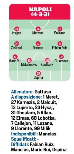 (Formazione) Napoli – Non al top Allan, Fabian Ruiz e Mertens