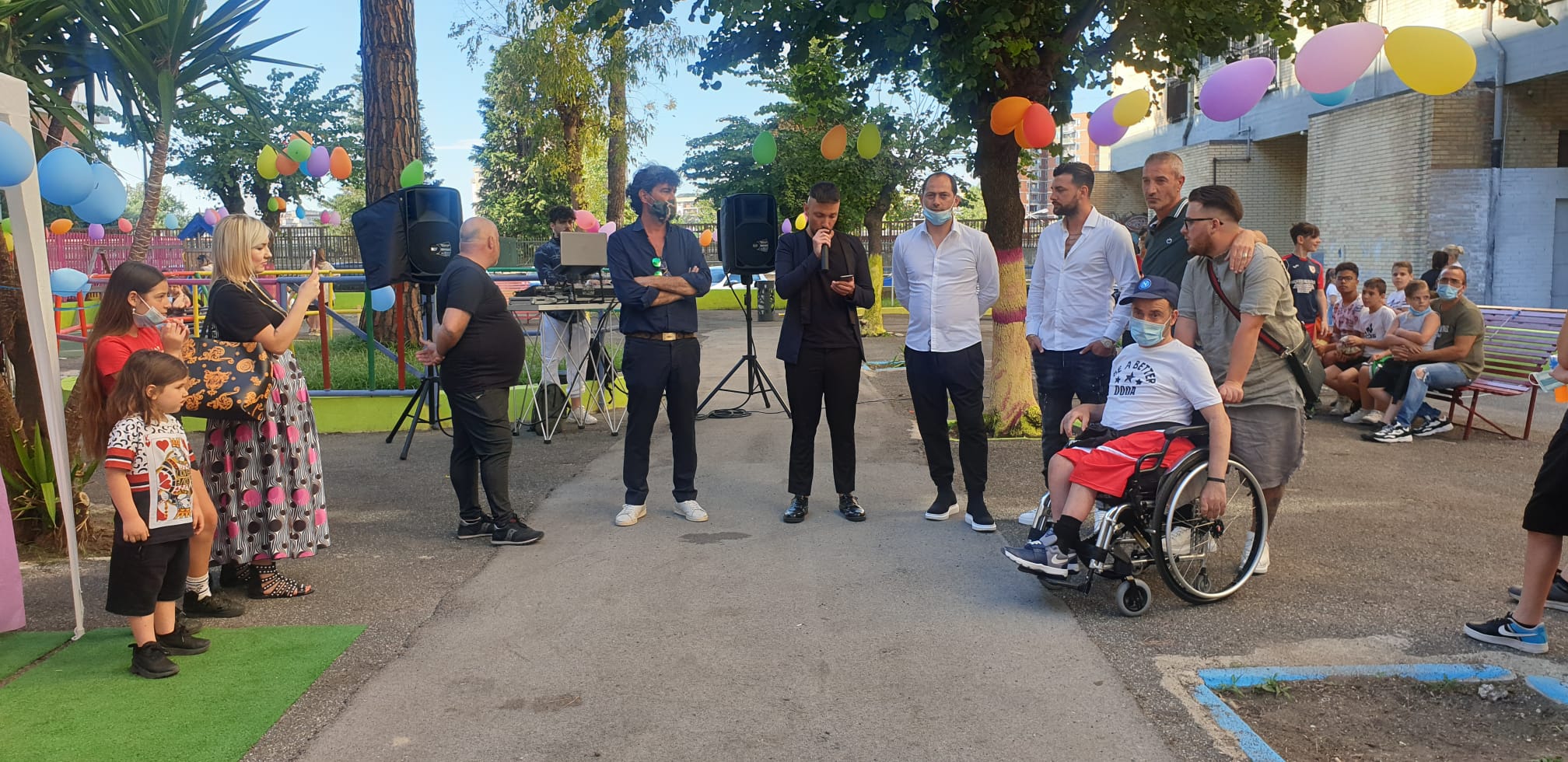 Quest’oggi presso Scampia è stato inaugurato il parco giochi per bambini in Via Largo Nicola Abbagnano. Nando Salvati, ex calciatore del Napoli, Casertana, Giugliano, nato nel Centro Sportivo Arciscampia di Napoli, è stato promotore di una bella iniziativa. Il suo sogno era fare un regalo al quartiere in cui vive oggi. Due mesi di lavoro (dal 9 Aprile e dunque in periodo lockdown) li ha impegnati per dare lustro ad un piccolo parco che oggi diventa un punto di riferimento per i bambini della zona (Scampia via Largo Nicola Abbagnano l’8 U), oltre che gioia per loro. Il parco è stato pulito, ristrutturato, dotato di erba sintetica, oggetto di manutenzione e dotato di giostre, fonte di attrazione per i più piccoli. Il ruolo della Fondazione Cannavaro-Ferrara è stato molto importante in quanto la stessa si è fatta carico della donazione di due giostre per i bambini. Vincenzo Ferrara direttore della stessa era presente all’inaugurazione insieme ad Antonio Piccolo, presidente dell’Arciscampia, stato ospite della manifestazione, essendo il presidente un punto di riferimento della zona. Presenti anche l’ex calciatore Giuseppe Vives, il classe 2002 del Napoli Primavera Vincenzo Potenza e il difensore del Torino e dell’Italia Armando Izzo che ha promesso altre giostrine per i ragazzi del quartiere.