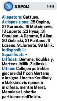 In attacco Mertens in vantaggio su Milik nel ruolo di punta