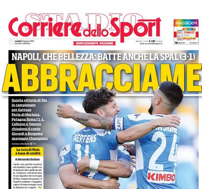 Il Corriere dello Sport in prima pagina: “ABBRACCIAME”. Napoli che bellezza!