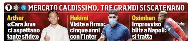 Cds -Mercato caldissimo, tre grandi si scatenano. Con Arthur, Hakimi e Osimhen sceso a Napoli