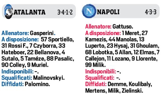 [Formazioni] Atalanta/Napoli, forfait in difesa per Gasperini, tornano Di Lorenzo e Demme