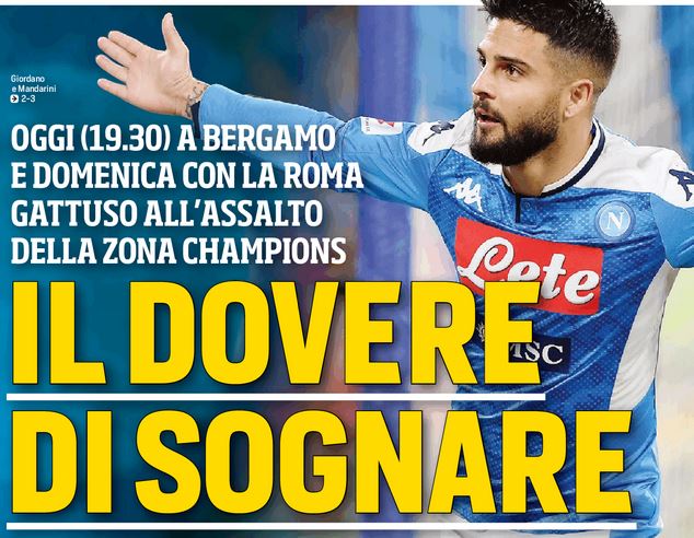 CdS Campania: “IL DOVERE DI SOGNARE”. A Bergamo per ripartire e poi concentrarsi sul Barcellona
