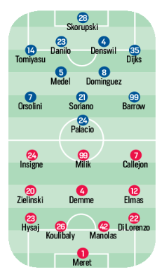 [Formazioni] Bologna-Napoli, Mihajlovic punta su Palacio. Per gli azzurri novità Elmas e Milik