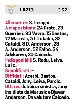 [Formazioni] Napoli-Lazio, spazio a Luperto in difesa. Dubbio in attacco per S. Inzaghi