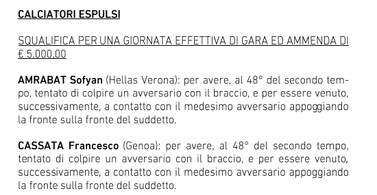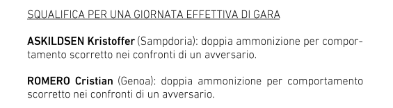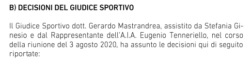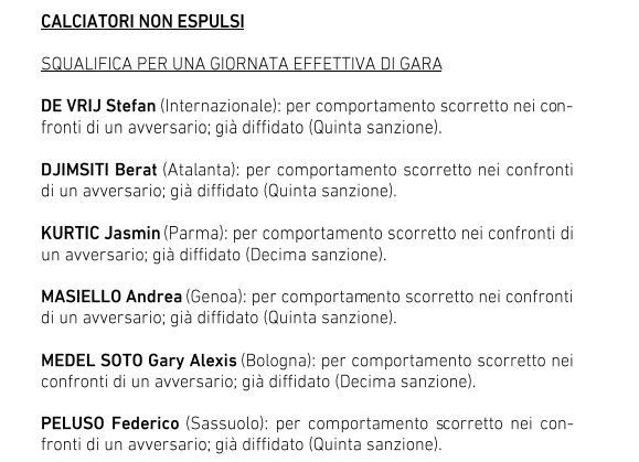 Il Giudice sportivo ha così disposto e di conseguenza non potranno iniziare a giocare la 1/a di campionato o giocatori. Per Gattuso la conseguenza della lite con la lazio gli costa un primo cartellino giallo