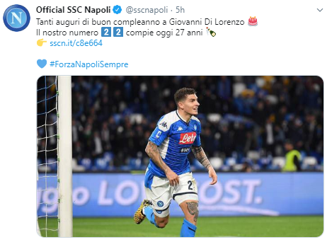 A Di Lorenzo vanno gli auguri del Presidente De Laurentiis, di tutta la SSC Napoli a cui si aggingono quelli di tutta la redazione de