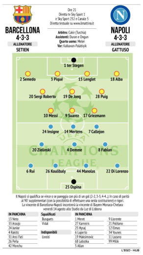 NewsCalcioRassegna Stampa [Grafico] – Il Mattino mette in campo il Napoli e il Barcellona By Giuseppe Sacco il Ago 8, 2020 - 08:00:09 0 Condividi Napoli e Barcellona, due 4-3-3 a specchio e due attacchi atomici Factory della Comunicazione BarcellonaFormazioniMattinoNapoli 0 Condividi FacebookTwitterGoogle+ReddItWhatsAppPinterestE-mail