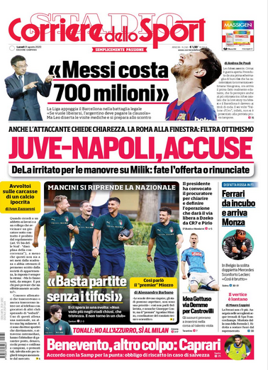 NewsCalcioIn Evidenza Rassegna stampa del 31 agosto. Prime pagine sportive nazionali By Giuseppe Sacco il Ago 31, 2020 - 08:00:21 0 Condividi In primo piano dai principali quotidiani nazionali Factory della Comunicazione CalcioNapoliRassegnaStampa 0 Condividi FacebookTwitterGoogle+ReddItWhatsAppPinterestE-mail