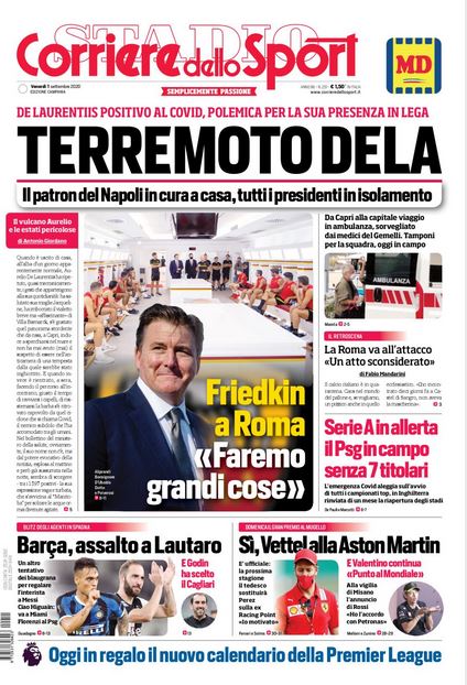 Rassegna stampa dell’ 11 settembre, l’edicola sportiva nazionale
