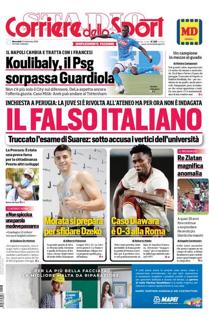 Rassegna stampa del 23 settembre, l’edicola sportiva