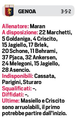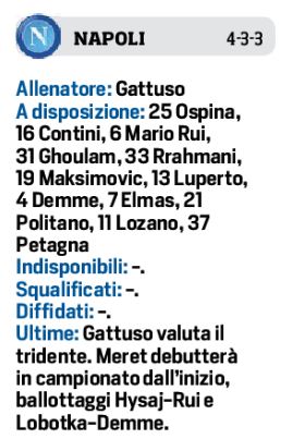 Domenica alle ore 15,00 al San Paolo, primo impegno ufficiale casalingo per il Napoli contro il Genoa di Rolando Maran per la seconda di campionato. Il tecnico degli azzurri Gennaro Gattuso probabilmente schiererà il tridente “pesante”, ovvero Mertens, Osimhen e Insigne, con Lozano pronto in caso di necessità. Per il resto Meret dovrebbe spuntarla su Ospina, Mario Rui in vantaggio su Hysaj a sinistra, mentre Lobotka favorito rispetto a Demme. Per i rossoblu sarà 3-5-2, squadra chiusa e pronta a ripartire con Pandev e Destro al centro dell’attacco. Sarà una sfida interessante e per i partenopei l’occasione è quella di confermare il successo di Parma.