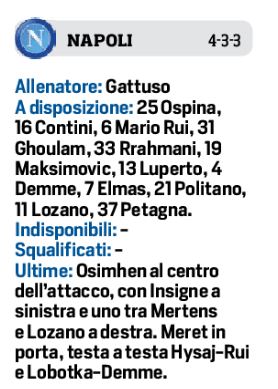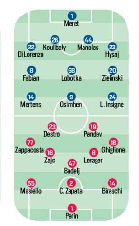 In attacco Osihmen e Insigne. Per il grifone possibile panchina
