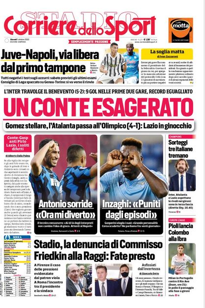 Dai principali quotidiani sportivi nazionali ecco in primo piano: