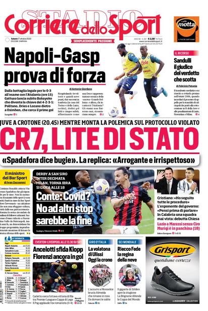 NewsCalcio Rassegna stampa del 17 ottobre. Prime pagine sportive By Giuseppe Sacco il Ott 17, 2020 - 07:40:56 0 Condividi In primo piano dai principali quotidiani sportivi nazionali Factory della Comunicazione CalcioNapoliRassegnaStampa 0 Condividi FacebookTwitterGoogle+ReddItWhatsAppPinterestE-mail