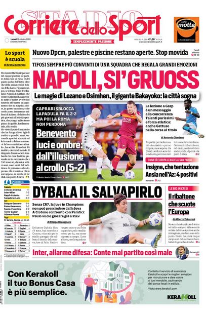 Rassegna stampa del 19 ottobre. Prime pagine sportive nazionali