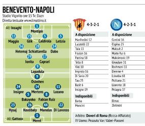 [Formazioni] Benevento/Napoli, sorpresa in porta. Sacrificato Politano