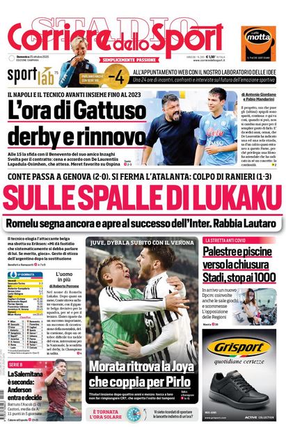 NewsCalcioRassegna Stampa Rassegna stampa del 25 ottobre. Prime pagine sportive By Giuseppe Sacco il Ott 25, 2020 - 07:40:12 0 Condividi In primo piano dai principali quotidiani sportivi nazionali Factory della Comunicazione CalcioNapoliRassegnaStampa 0 Condividi FacebookTwitterGoogle+ReddItWhatsAppPinterestE-mail