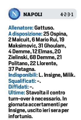 Gattuso schiera di nuovo Manolas in difesa e Fabian Ruiz a centrocampo