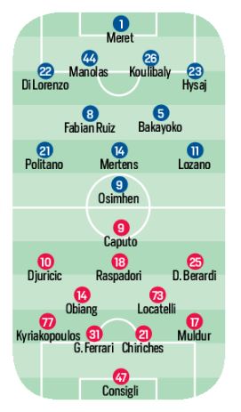 [Formazioni] Ore 18 Napoli/Sassuolo, domenica sfida Osimhen contro Caputo