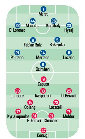 (Formazioni ) Napoli/Sassuolo, ritornano Meret, Manolas e Osimhen. Assenza pesante per De Zerbi