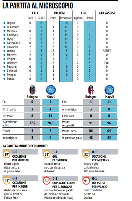 (Audio C Martino) – Il microscopio – Tutto su Napoli e Bologna: falli,palloni,tiri, gol e assist