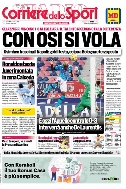 Rassegna stampa del 9 novembre. L’edicola sportiva nazionale