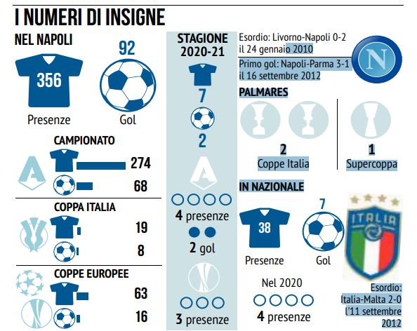 Per Lorenzo è la sua maglia portafortuna, adesso sta rendendo al meglio anche per la collocazione migliore possibile a livello tattico: esterno sinistro nel 4-3-3 di Mancini, come lo fu con Sarri, e nello scorso campionato con Gattuso e sta funzionando al massimo anche nel nuovo 4-2-3-1 di Ringhio.