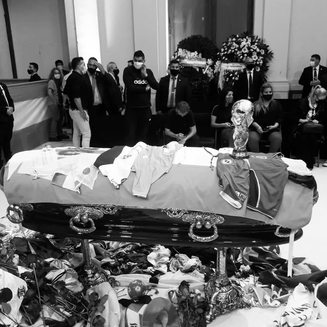 Alle 19:28 ora italiana, una maglia del Napoli con il numero 10 di Maradona è stata deposta sul feretro del grande Diego.