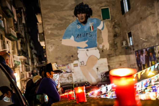Napoli ha perso un pezzo della sua identità e si guarda intorno smarrita: cerca in ogni modo di salutare Diego, prova a esprimere un dolore che sfiora l’inesprimibile. Display delle edicole con la scritta «Addio Diego Maradona», lacrime dei passanti, bandiere azzurre che spuntano al centro storico come in periferia, edicole votive in cui il Pibe è al fianco della Madonna, migliaia di post a invadere ogni profilo social, ogni chat. Locali, come il bar Nilo noto per la reliquia del «capello di Maradona», riapriranno oggi per omaggiare Diego con un fiore. Maradona è nell’anima di Napoli: la voglia di salutarlo è stata immediata, spontanea, unanime. Napoli soffre e piange il suo eterno numero 10 in tanti modi. Dai Quartieri Spagnoli a San Giovanni a Teduccio, dai balconi privati ai social network.