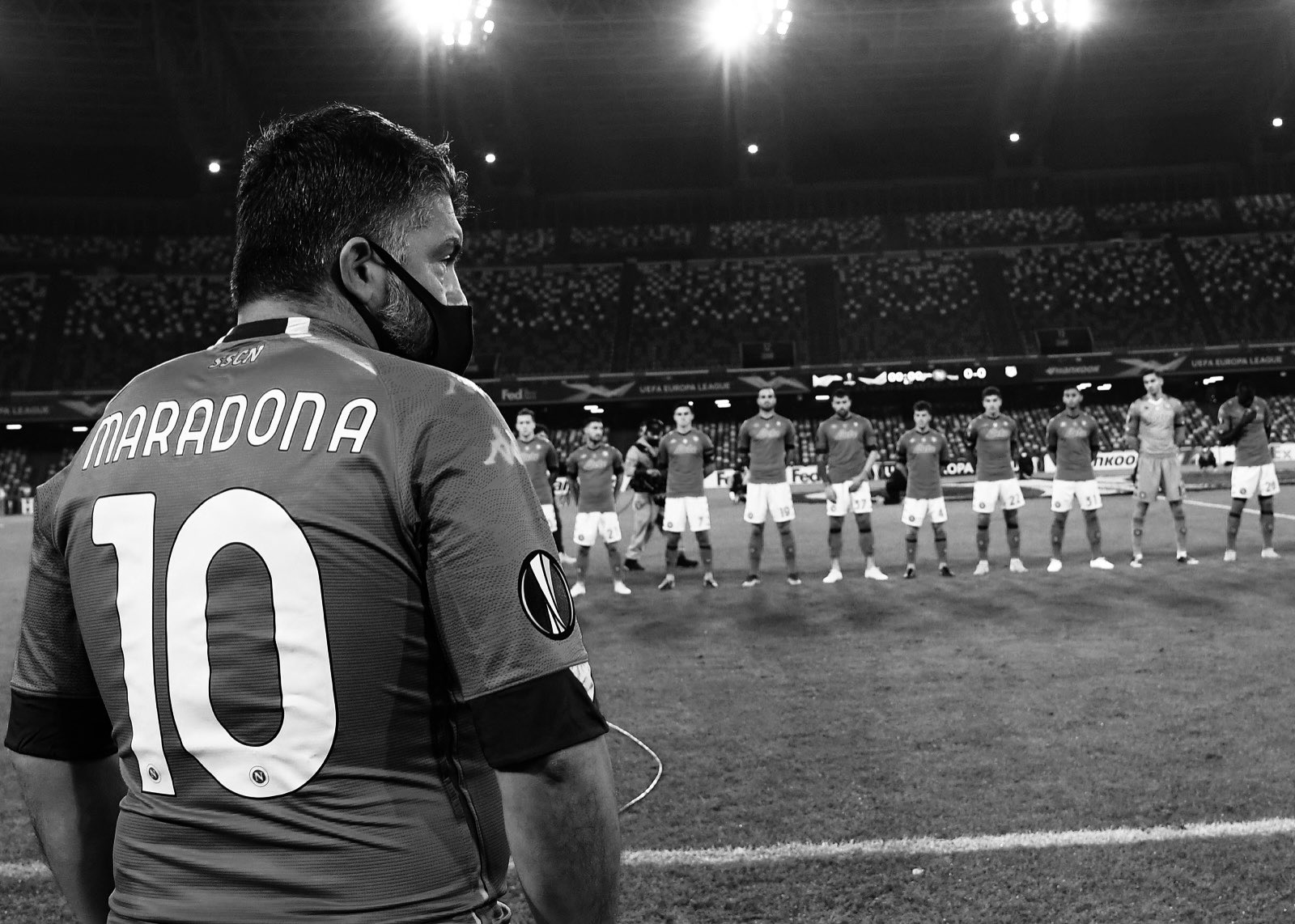 Il Napoli batte il Rijeka nella prima notte che battezza virtualmente a furor di popolo l’ “Arena Maradona”. Davanti l’effigie di Diego proiettata nel cielo, le immagini del campo si intrecciano e si fondono con le struggenti emozioni che si consumano all’esterno. In una sequenza immortale della nostra storia che scorre dinanzi agli occhi come un romanzo eterno. Il riflesso luminoso della memoria si riverbera in un abbraccio commosso e tiene alto il battito azzurro. Il Napoli si veste con la maglia numero 10 e accende la suggestione nel ricordo del Mito.