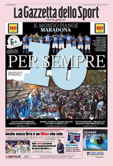 NewsCalcioRassegna Stampa Gazzetta in prima pagina “PER SEMPRE 10”. Il mondo piange Maradona By Giuseppe Sacco il Nov 27, 2020 - 07:08:01 0 Condividi La prima pagina della Gazzetta dello Sport titola così. Factory della Comunicazione GAZZETTAPaginaprima 0 Condividi FacebookTwitterGoogle+ReddItWhatsAppPinterestE-mail