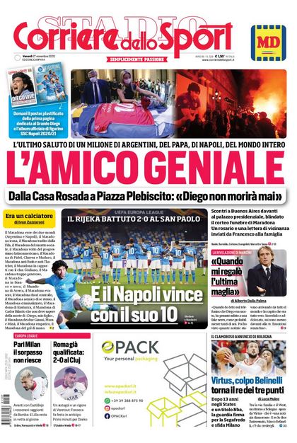 NewsCalcioRassegna Stampa Rassegna stampa del 27 novembre. Prime pagine nazionali. CdS “L’AMICO GENIALE” By Giuseppe Sacco il Nov 27, 2020 - 08:15:37 0 Condividi Oggi come ieri in primo piano c’è solo LUI Factory della Comunicazione Mattino.CalcioNapoliRassegnaStampa 0 Condividi FacebookTwitterGoogle+ReddItWhatsAppPinterestE-mail