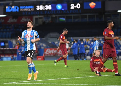 La fascia di capitano sul braccio, la 10 di Diego nel cuore, il pallone che parte col balsamo di un incantesimo e disegna una bisettrice inarrivabile evocando suggestive parabole eterne. Quello di Insigne non è semplicemente un gol, ma una citazione. Una magia che apre Napoli-Roma con una punizione che illumina d’immenso la notte del Mito. Lorenzo poi corre ad afferrare la maglia dedicata a Maradona e più che una esultanza sembra una invocazione. E’ la scena più eloquente e pregnante di questa serata che sprigiona emozioni a catena. E’ l’input che prelude alla sinfonia azzurra ispirata da una melodia celestiale. Fabian poco dopo l’ora infila l’angolo di precisione. Poi Dries mette la sua griffe d’autore che non può mancare nell’agenda del cuore. E Politano al 90esimo segna saltando pure il portiere, e si capisce che nell’aria c’è più di una sublime ispirazione. Finisce 4-0. Senza storia sul campo ma con la Leggenda che si è appena battezzata nello Stadio Diego Armando Maradona. Fonte: SSC Napoli