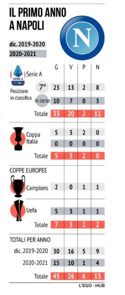avuto dubbio sulle cose da fare. Dirà: «Ho provato a fare l’allenatore che misura le parole, ma non lo so fare. Sto male se lo faccio, devo sempre dire e fare quello che ho dentro di me». È stato il lockdown il momento con cui lui e la squadra sono diventati davvero un tutt’uno: non è un caso che nessuno si è mosso da Napoli fino alla ripresa. E in quei interminabili due mesi il Napoli è diventato il suo Napoli. Dal pagamento degli stipendi ai rinnovi, dalla ripresa degli allenamenti alla gestione della quarantena. Lì Ringhio si è scoperto allenatore-manager e ha stregato De Laurentiis che pure qualche esitazione l’aveva. Alla ripresa la vittoria della Coppa Italia è stata l’apoteosi. Come quell’abbraccio in mezzo al campo dell’Olimpico e la promessa del premio che, ovviamente, la squadra fece chiedere a Gattuso. E da chi sennò? Quanta acqua era passata sotto i ponti dalla notte in cui la squadra aveva deciso di ammutinarsi e tornarsene a casa invece di andare in ritiro. La squadra non vola nel finale di stagione, è appagata e stanca anche se sogna l’impresa a Barcellona l’8 agosto ma contro Messi e company manca quella convinzione che voleva Gattuso. Inizia la nuova stagione dove Ringhio è al centro di ogni cosa. Chiede e ottiene il rinnovo di Mertens, l’ingaggio di Osimehn, la conferma di Lozano. È tutto nelle sue mani, sia pure con qualche inquietudine. È l’uomo giusto, nel momento giusto. Firmerà per altri due anni in questi giorni, senza fretta, anche perché ha dovuto attendere un mese prima dell’arrivo delle bozze. Nel mirino ha adesso il passaggio ai sedicesimi di Europa League e il successo nella Supercoppa. Senza perdere terreno dalla zona Champions. E lo scudetto. Ma questo meglio non dirglielo. Pino Taormina (Il Mattino)