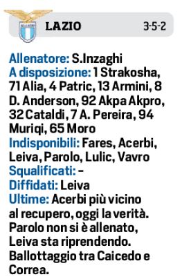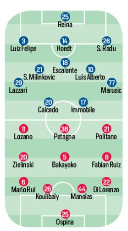Domani sera alle ore 20,45 allo stadio Olimpico, la sfida tra la Lazio e il Napoli, valevole per la tredicesima giornata. Per i padroni di casa allenati da Simone Inzaghi, non sarà una gara semplice, oltre per il valore degli avversari, ma anche per l’infermeria. Forse potrebbe recuperare in extremis Acerbi, oggi si deciderà, ma non potrà contare su Marco Parolo a centrocampo. Certe anche le assenze di Lulic, Lucas Leiva e Fares. In attacco ballottaggio Correa-Caicedo con l’ecuadoregno in vantaggio sullo spagnolo. Per Gattuso invece sicure le assenze per infortunio di Mertens e Osimhen oltre allo squalificato Insigne. La novità potrebbe essere Fabian Ruiz a centrocampo, mentre in attacco ballottaggio Elmas-Politano per affiancare Petagna e Lozano.